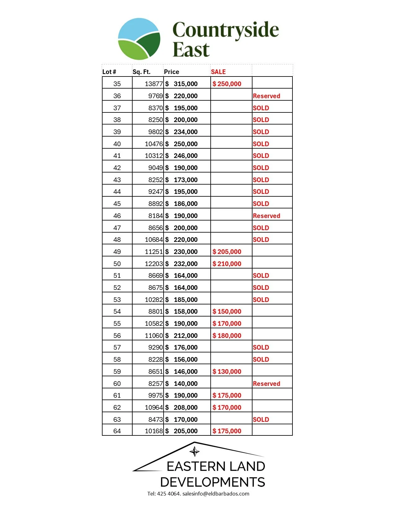 Countryside East St. Thomas Reduced prices on our remaining lots! Contact us View fullsize Development LocationCountryside EastSt. Thomas,Barbados